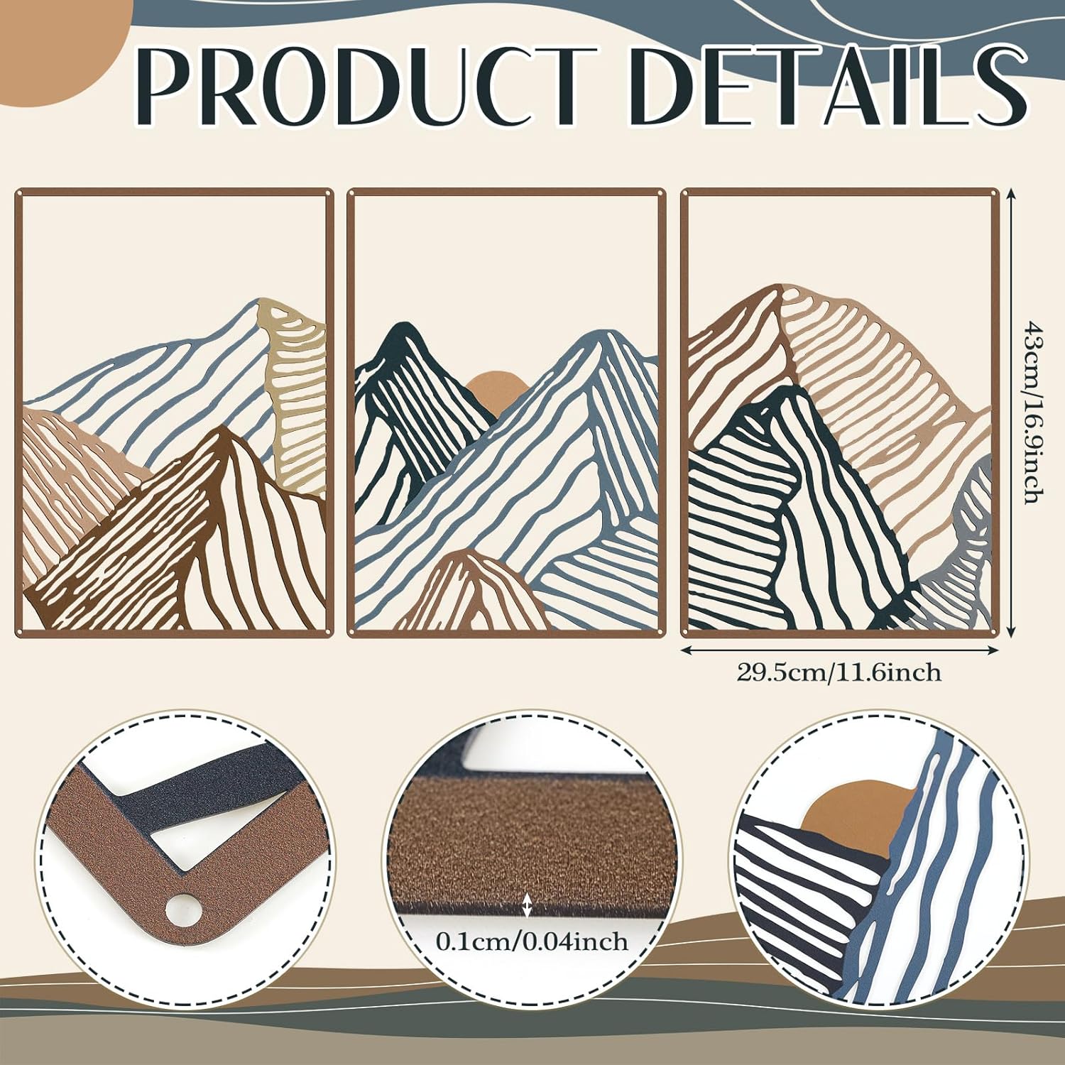 3 Pcs Mountain Metal Wall Art Mountain Line Wall Decor Abstract Minimalist Wall Art Rustic Nature Wall Decor for Home Bathroom Living Room (Vibrant Colors)